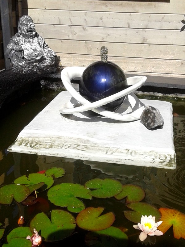 De opdrachtgever had als wens een gedenksteen te laten maken voor in een vijver.
